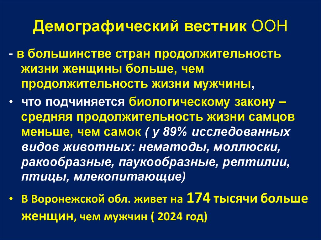 - в большинстве стран продолжительностьжизни женщины больше, чем
