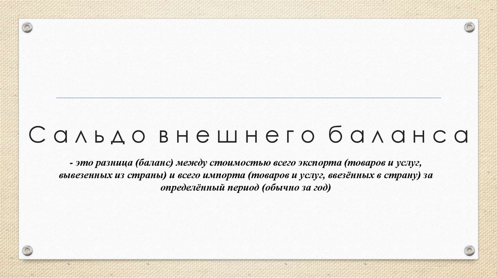 Сальдо внешнего баланса- это разница (баланс) между стоимостью всего экспорта (товаров и услуг,