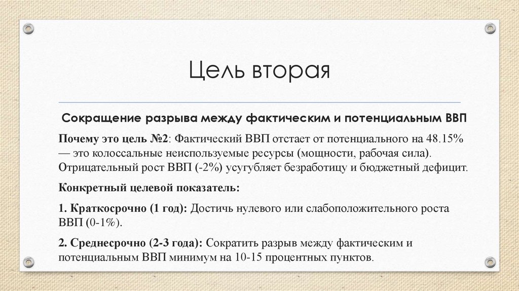 Сокращение разрыва между фактическим и потенциальным ВВППочему это цель №2: Фактический ВВП отстает от потенциального на 48.15%