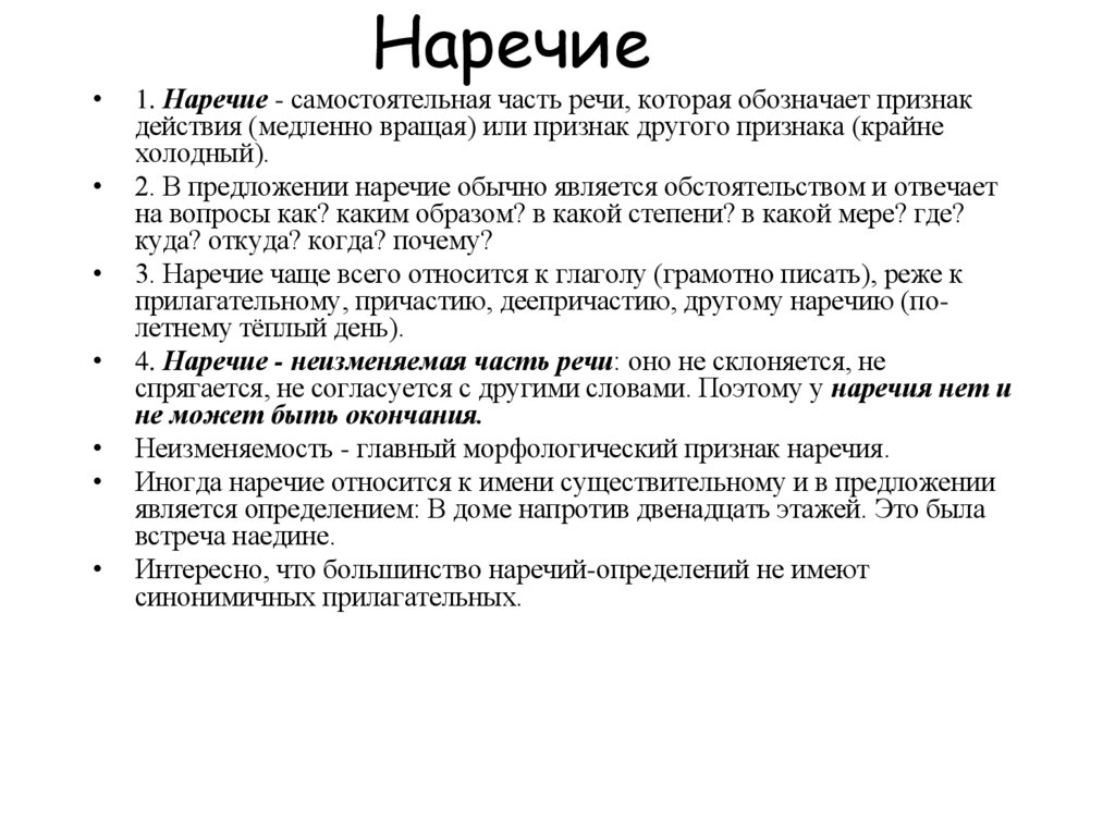 Интересно, что большинство наречий-определений не имеют