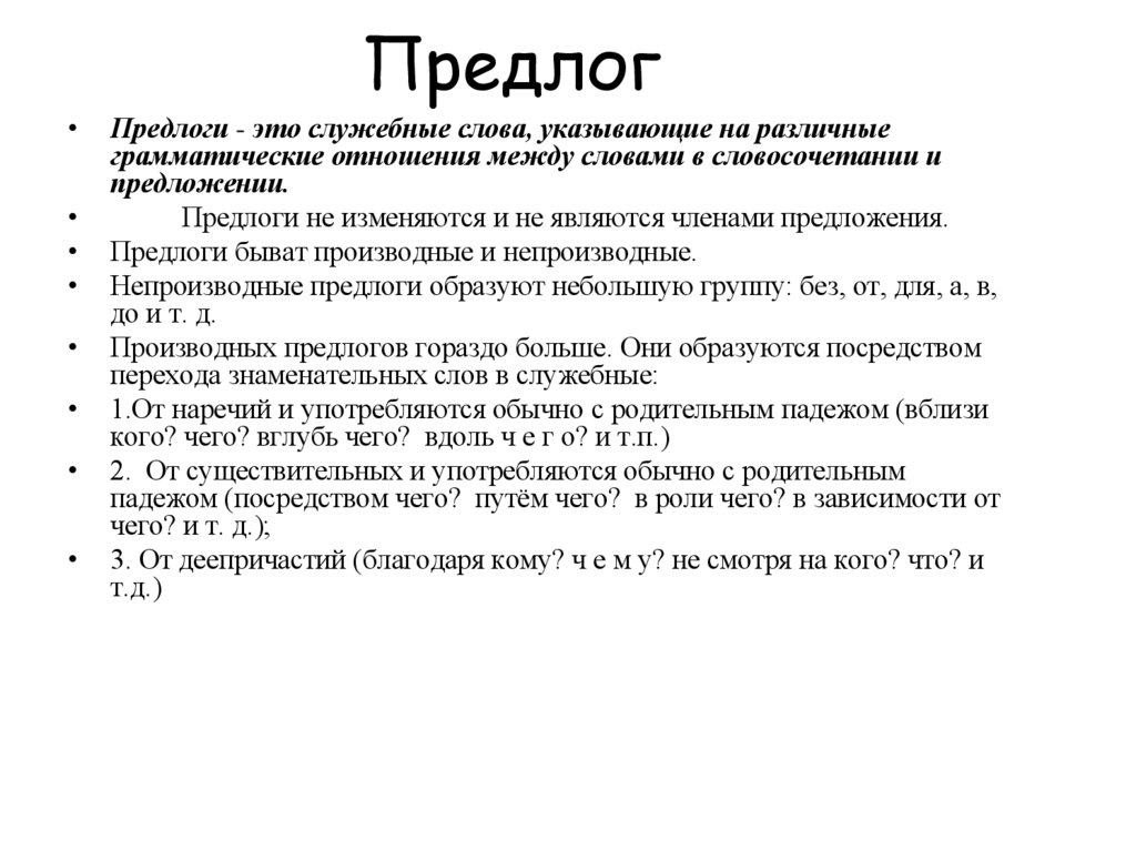 Предлоги быват производные и непроизводные.