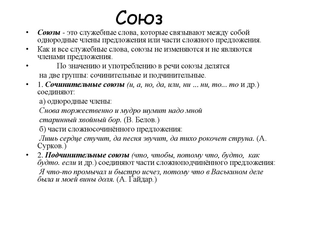 Как и все служебные слова, союзы не изменяются и не являются