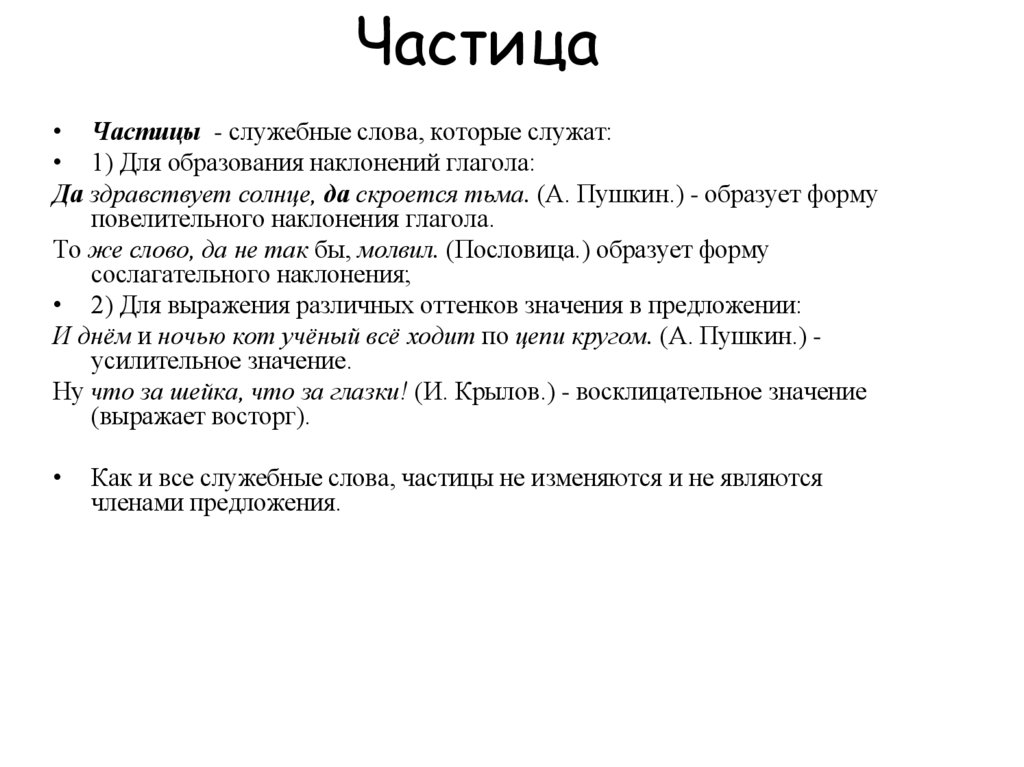 Как и все служебные слова, частицы не изменяются и не являются