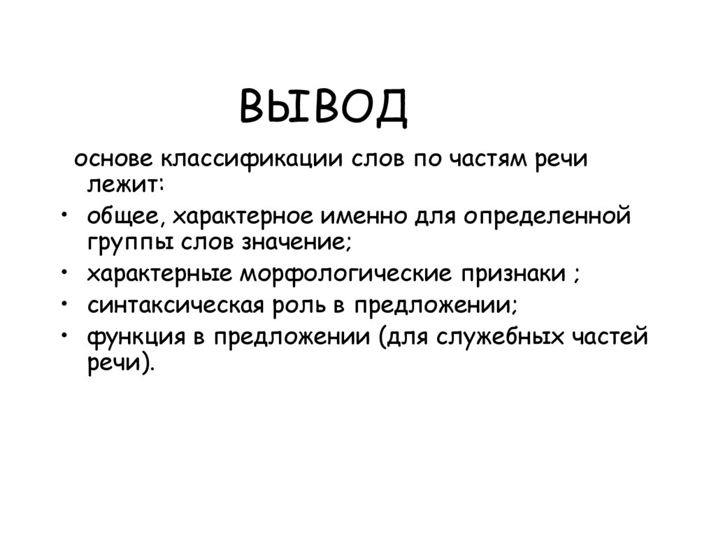 основе классификации слов по частям речилежит: