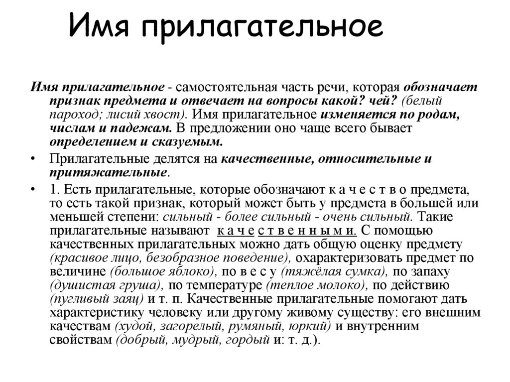 • Прилагательные делятся на качественные, относительные и