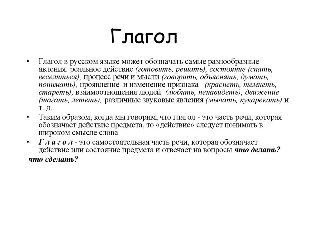 • Г л а г о л - это самостоятельная часть речи, которая обозначает