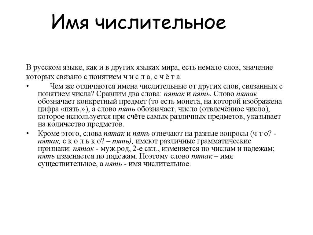 Имя числительноеВ русском языке, как и в других языках мира, есть немало слов, значение