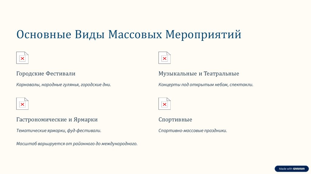 Основные Виды Массовых МероприятийГородские Фестивали