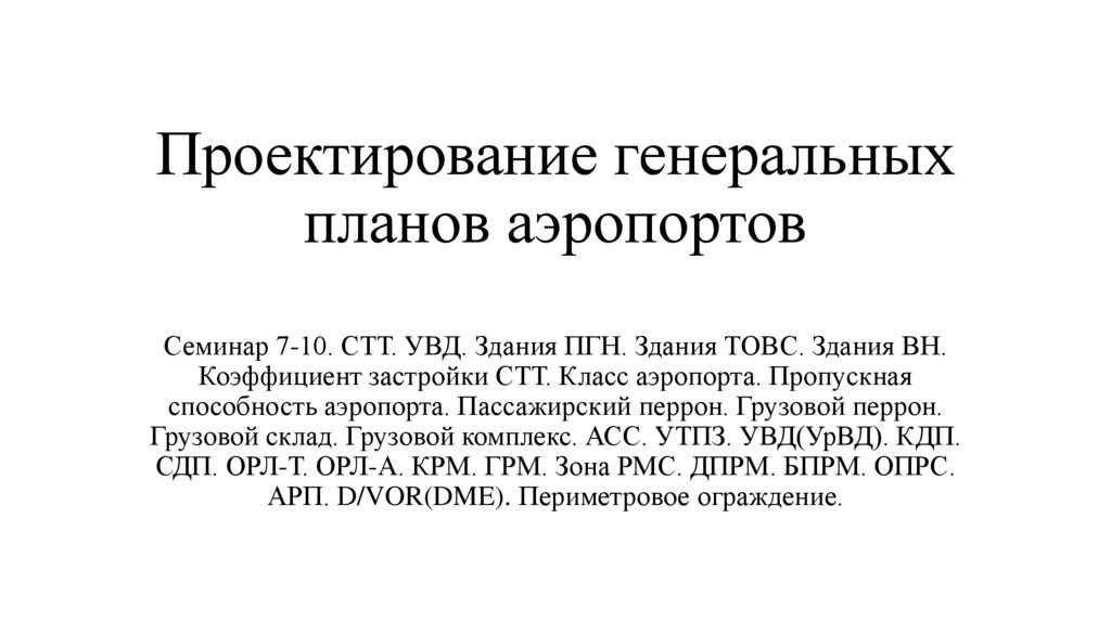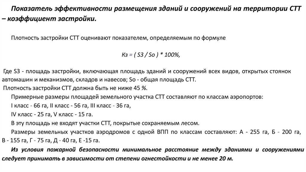 Семинар 7-10. СТТ. УВД. Здания ПГН. Здания ТОВС. Здания ВН.Коэффициент застройки СТТ. Класс аэропорта. Пропускная