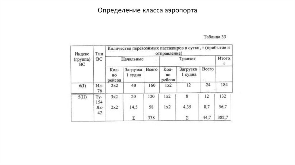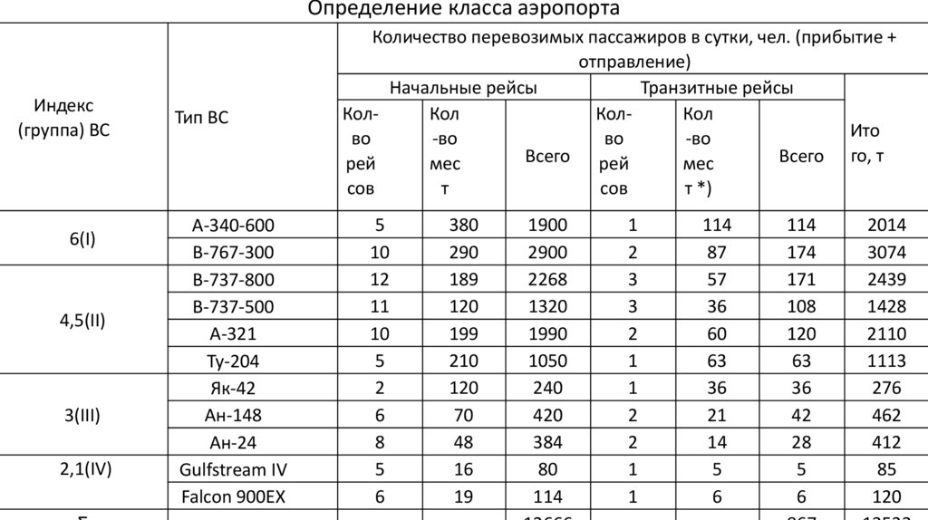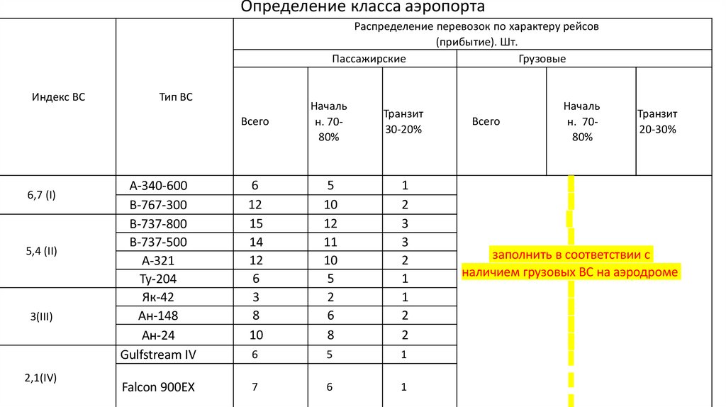 Процентное соотношение видов перевозок определяется классом аэропорта (табл. 30) или проектным заданием.