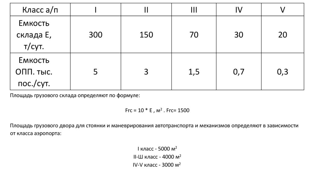 Примерные размеры площадей земельного участка СТТ составляют по классам аэропортов: