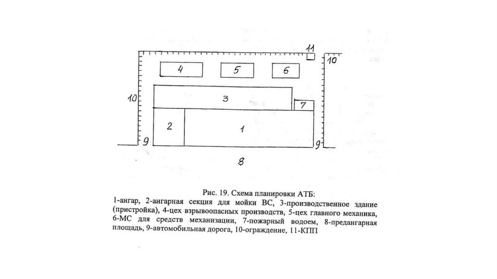 длительного пребывания пассажиров (гостиница), отделение перевозки почты, грузовой склад и двор, цех бортового