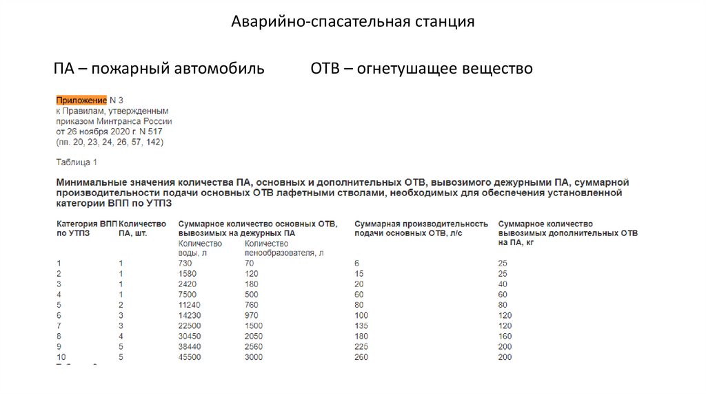 Аварийно-спасательная станцияПА – пожарный автомобиль
