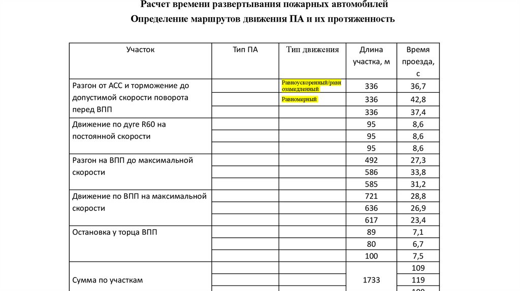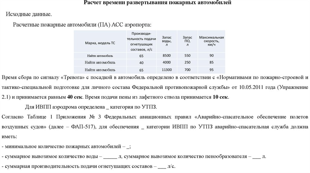 Расчет времени развертывания пожарных автомобилейИсходные данные.