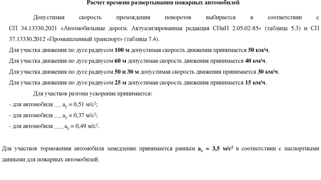 Расчет времени развертывания пожарных автомобилейДопустимая