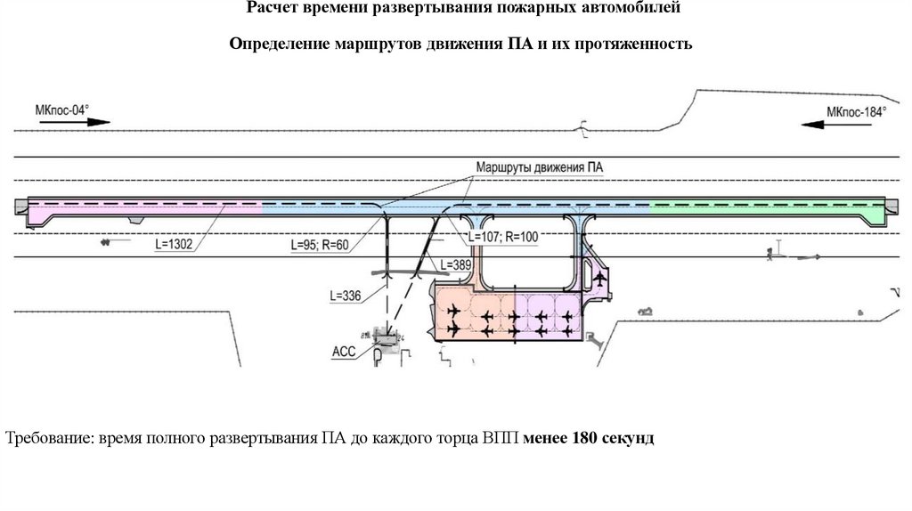 Требование: время полного развертывания ПА до каждого торца ВПП менее 180 секунд