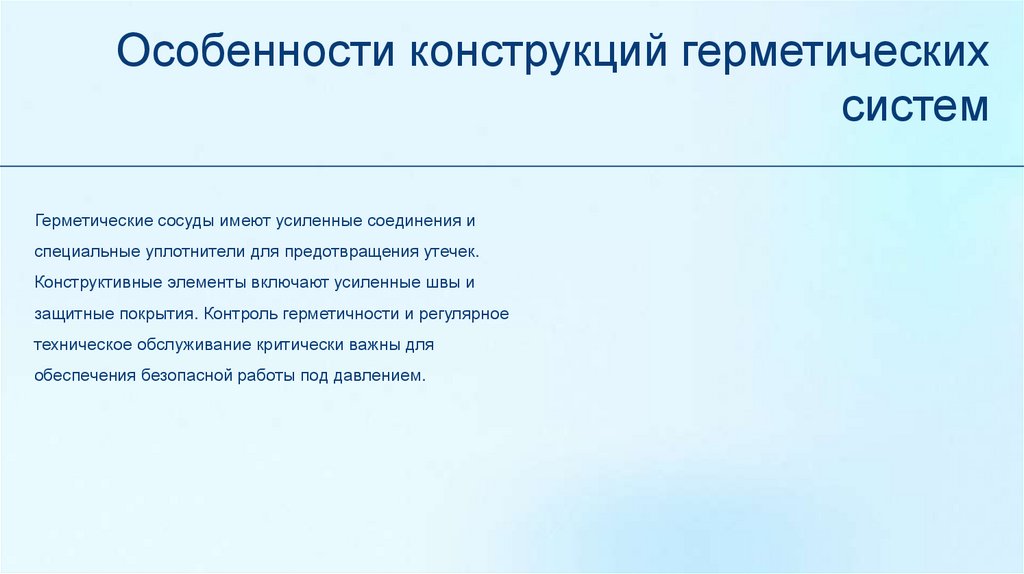 уделяется вопросам безопасной эксплуатации герметических систем,