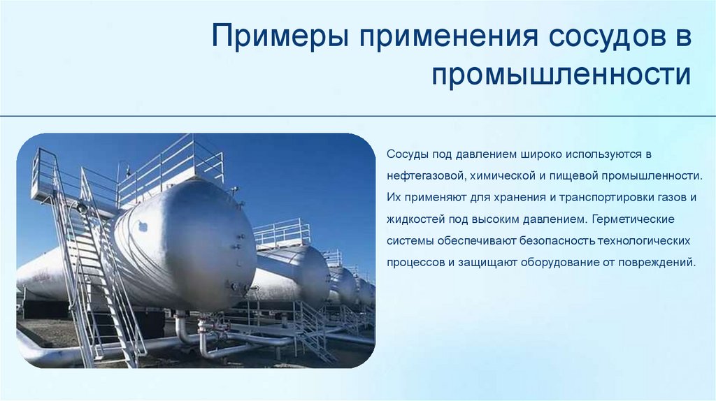 Сосуды под давлением широко используются внефтегазовой, химической и пищевой промышленности.