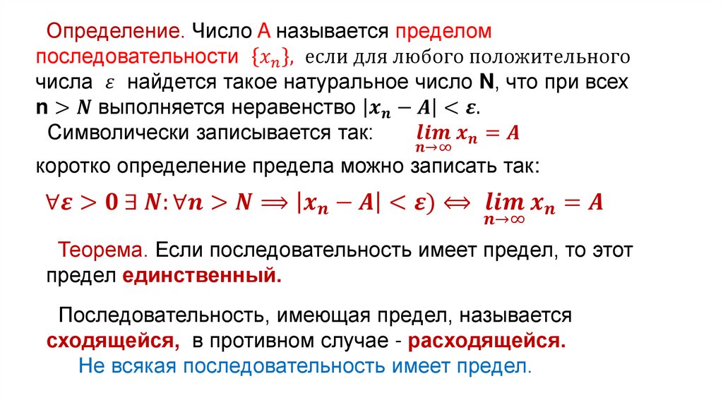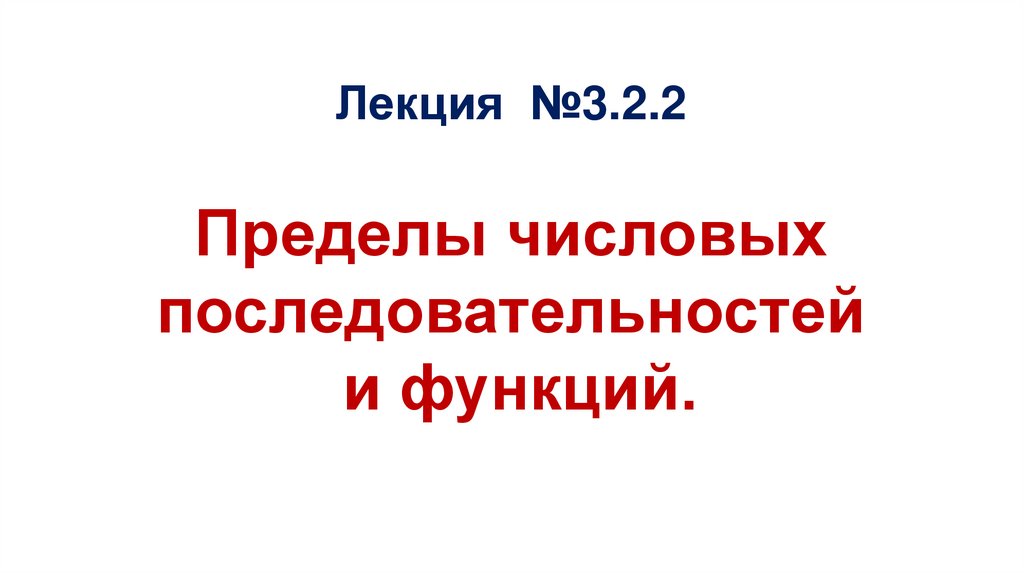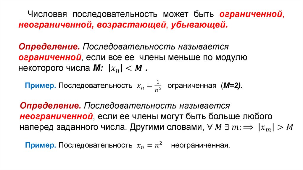 Учебные вопросы:1.Числовая последовательность. Предел числовой