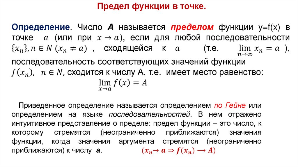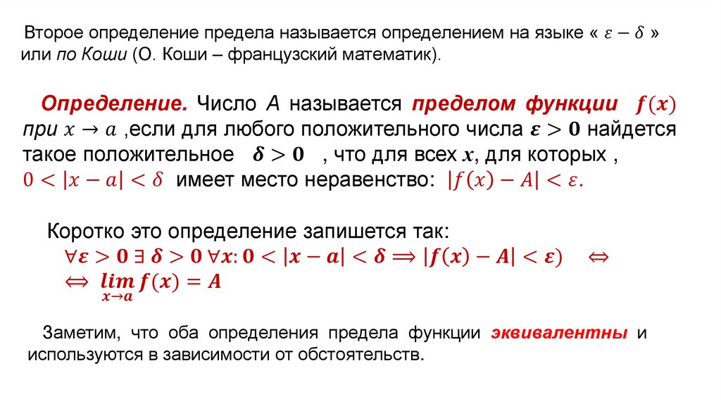 Первое корректное определение предела числовой функциибыло дано Коши в 1821 году в его «Курсе алгебраического