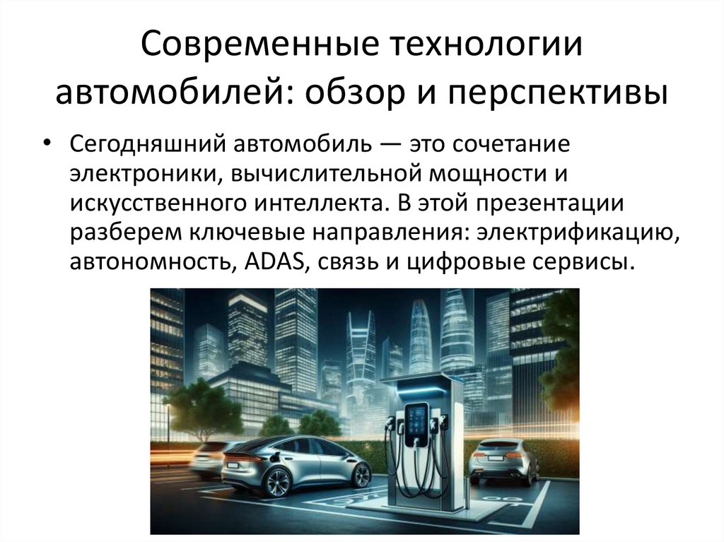 • Сегодняшний автомобиль — это сочетаниеэлектроники, вычислительной мощности и