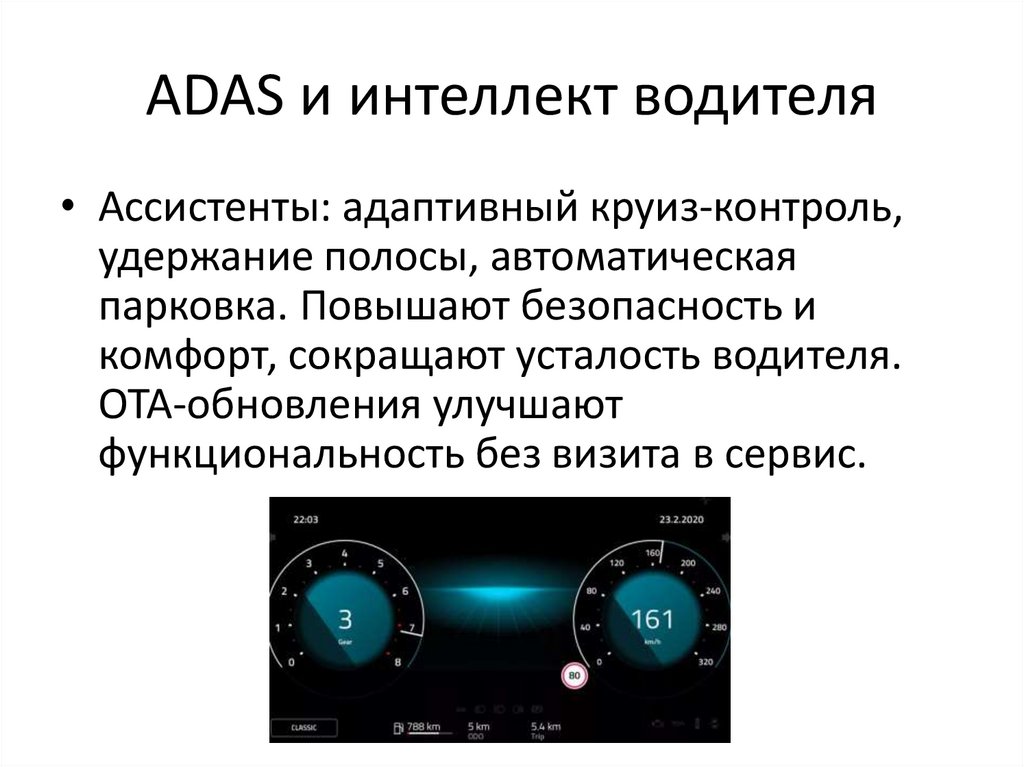 • Ассистенты: адаптивный круиз-контроль,удержание полосы, автоматическая
