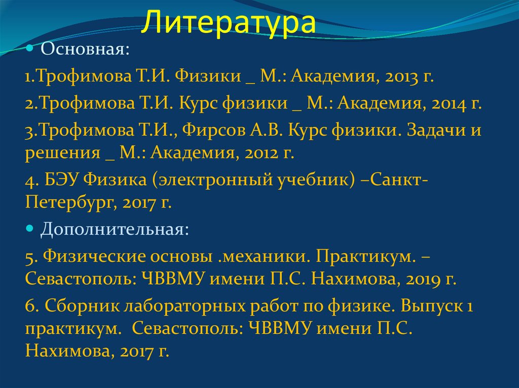 2.Трофимова Т.И. Курс физики _ М.: Академия, 2014 г.
