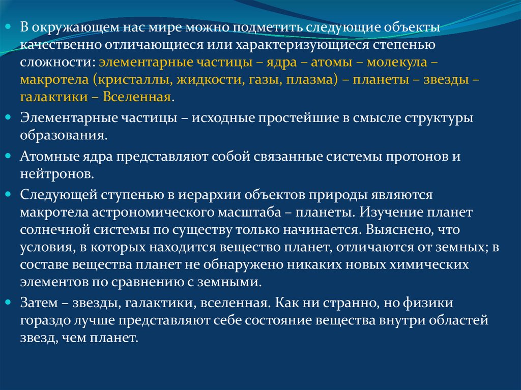 Исходя из естественно-научных представленийо строении и свойствах, до настоящего времени
