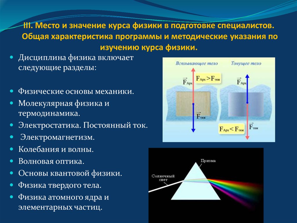 14. III. Место и значение курса физики в подготовке специалистов. Общая характеристика программы и методические указания по