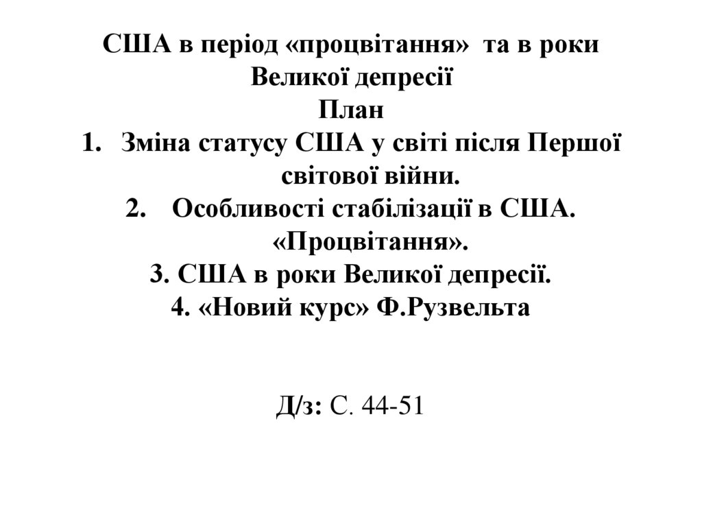 США в період «процвітання» та в рокиВеликої депресії