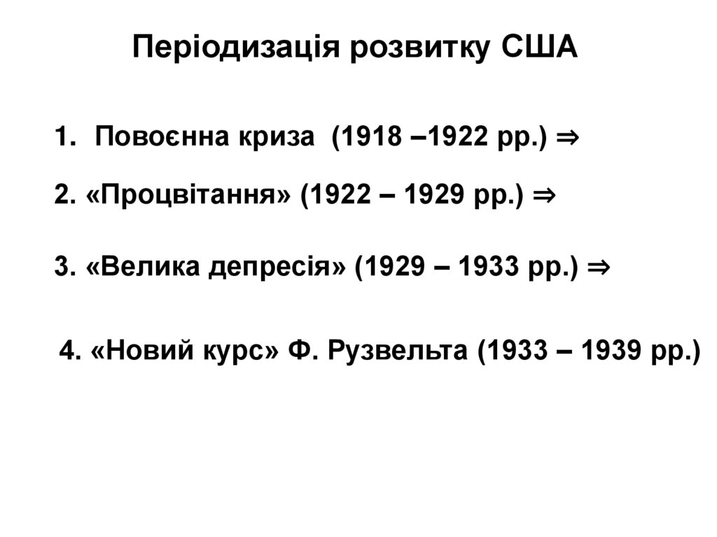 Періодизація розвитку США1. Повоєнна криза (1918 –1922 рр.) ⇒