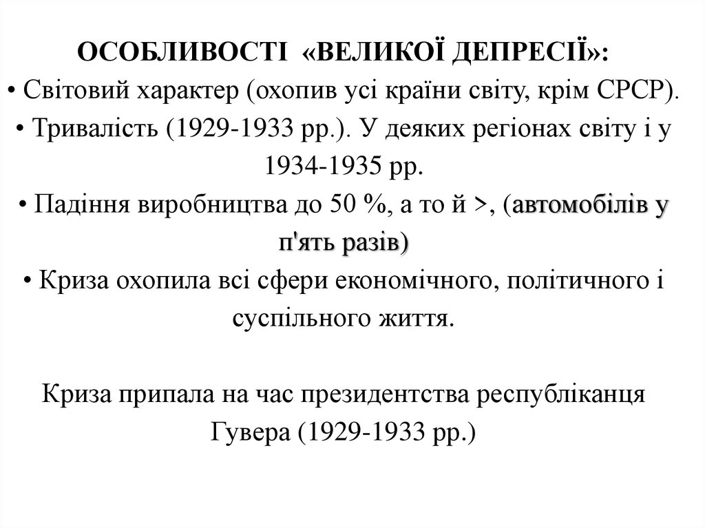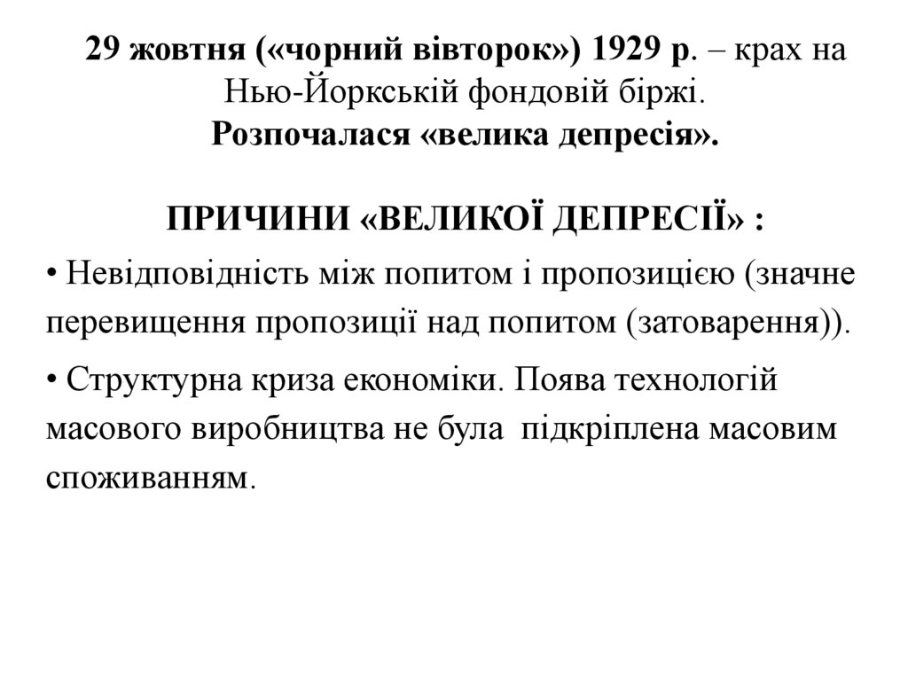 3. «Велика депресія» (1929 – 1933 рр.) ⇒