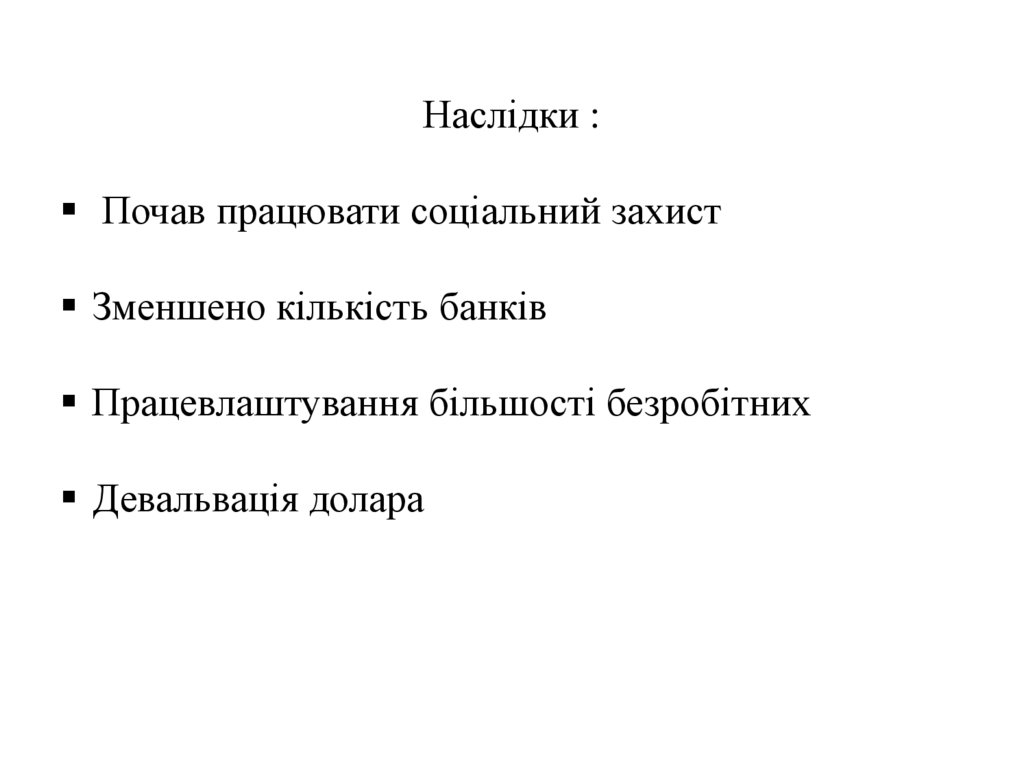 Наслідки :Почав працювати соціальний захист