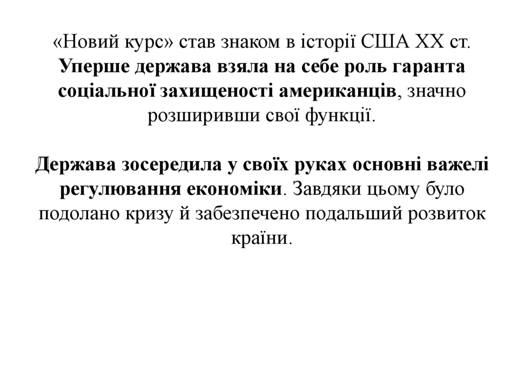 «Новий курс» став знаком в історії США XX ст.Уперше держава взяла на себе роль гаранта