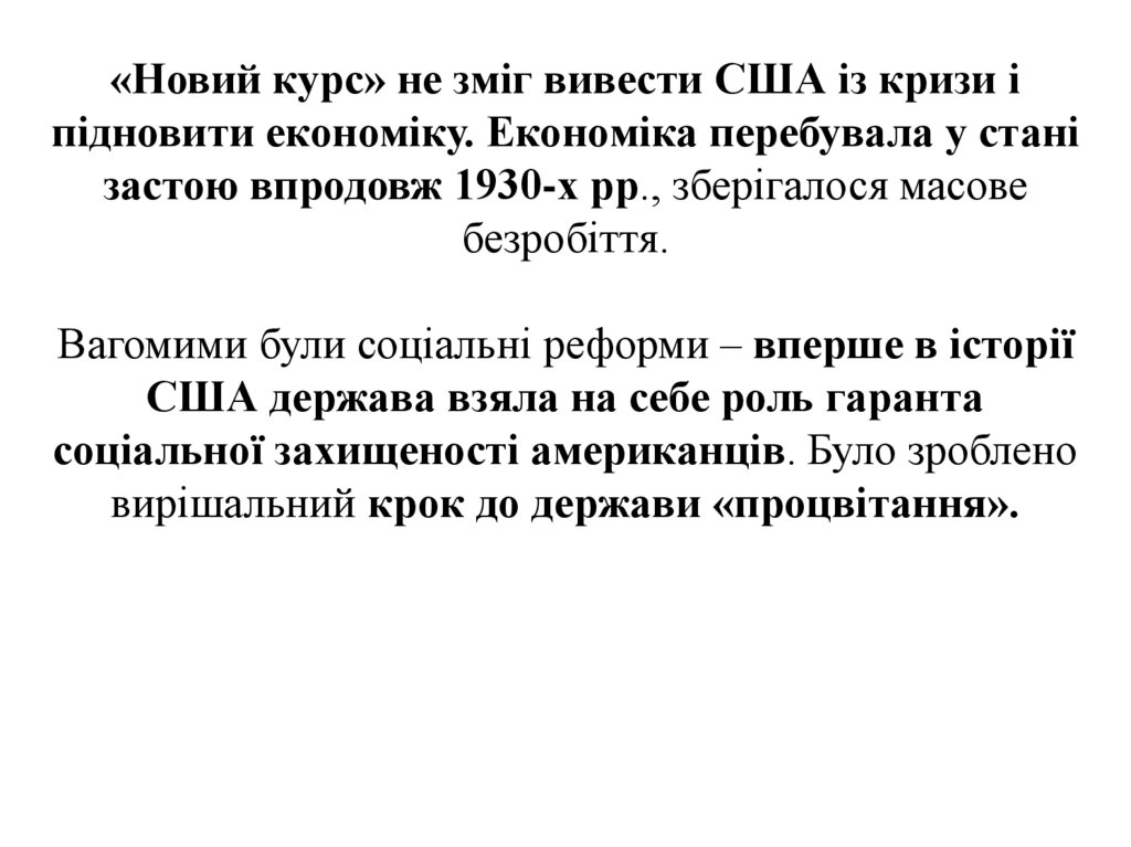 «Новий курс» не зміг вивести США із кризи іпідновити економіку. Економіка перебувала у стані