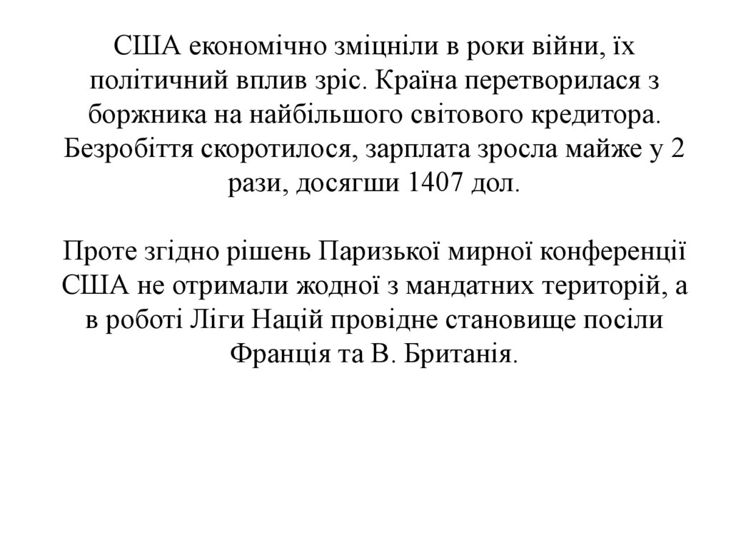 1. Зміна статусу США у світі після Першоїсвітової війни.
