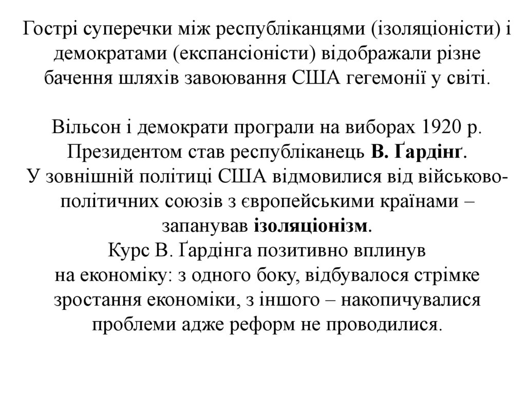Президентом став республіканець В. Ґардінґ.