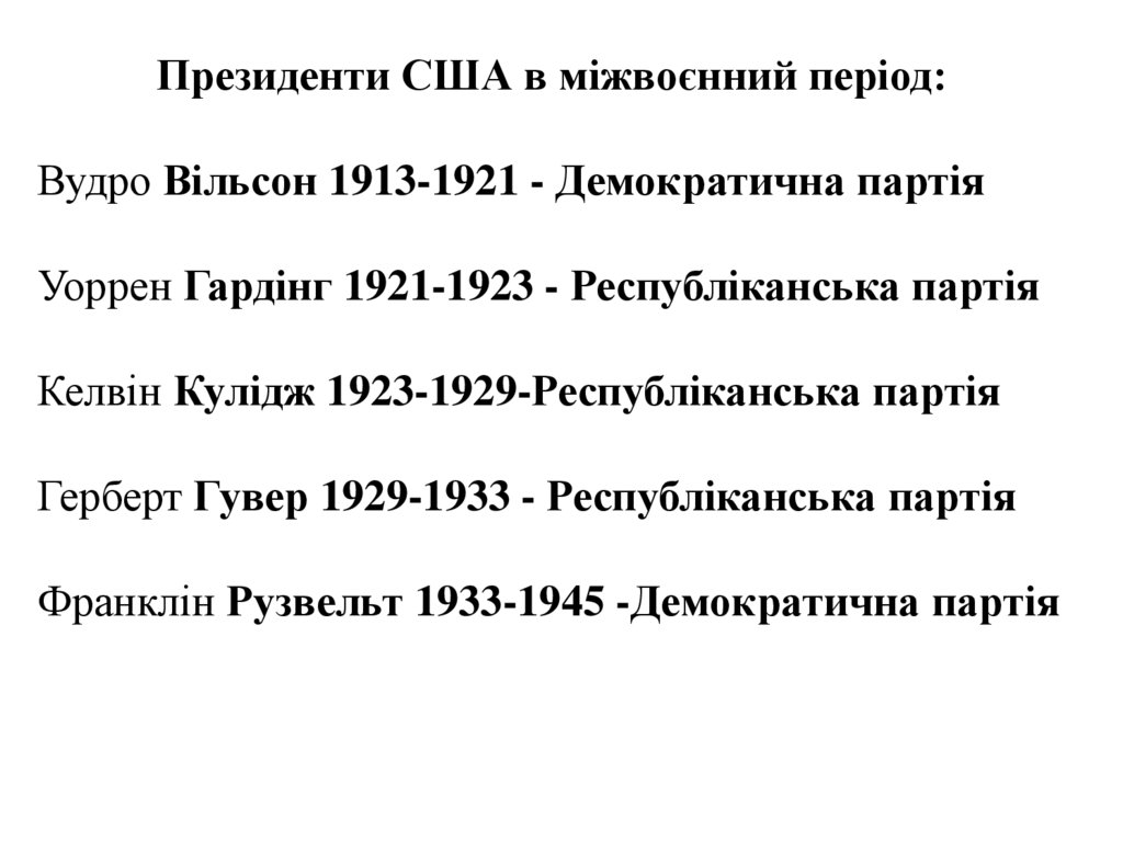 Президенти США в міжвоєнний період:²ì’ÿ Ðîêè ïåðåáóâàííÿ ïðè âëàä³ Ïàðò³éíà ïðèíàëåæí³ñòü