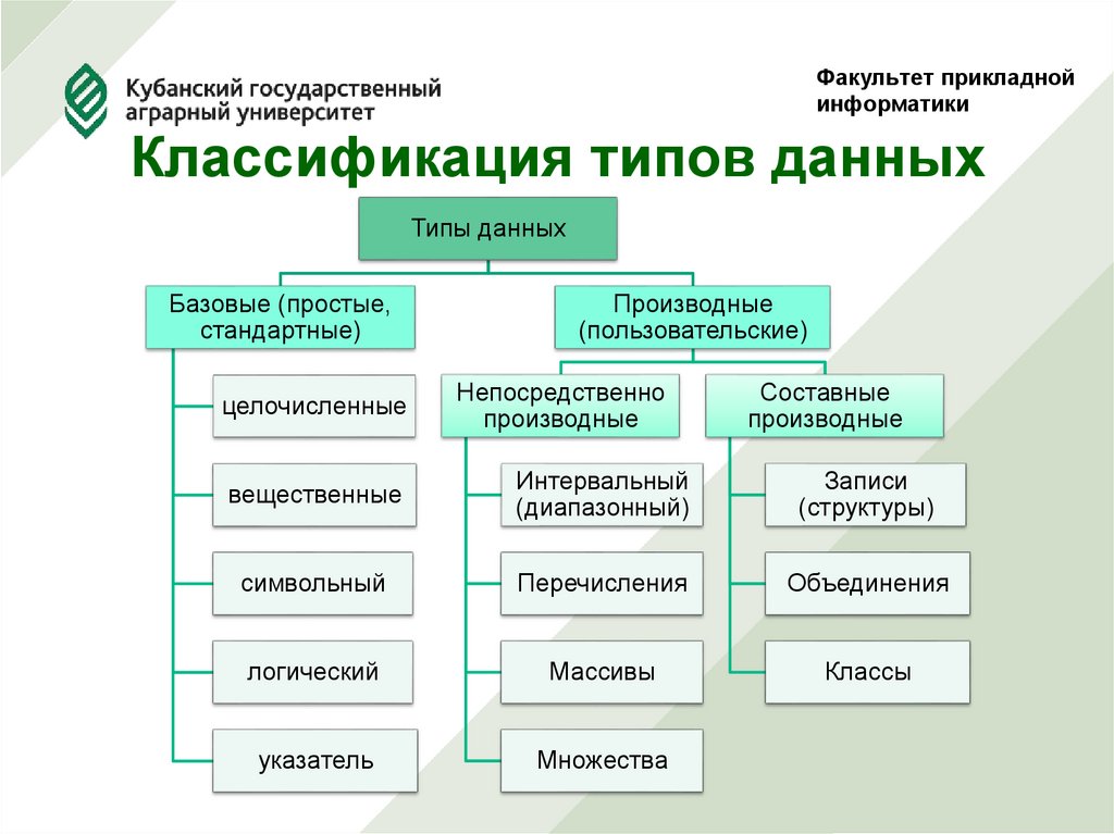 Классификация типов данныхТипы данных