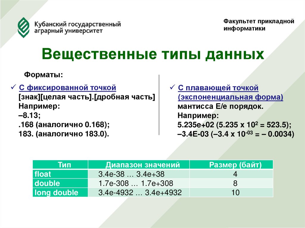 Вещественные типы данных