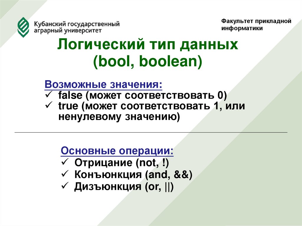 6. Логический тип данных (bool, boolean)