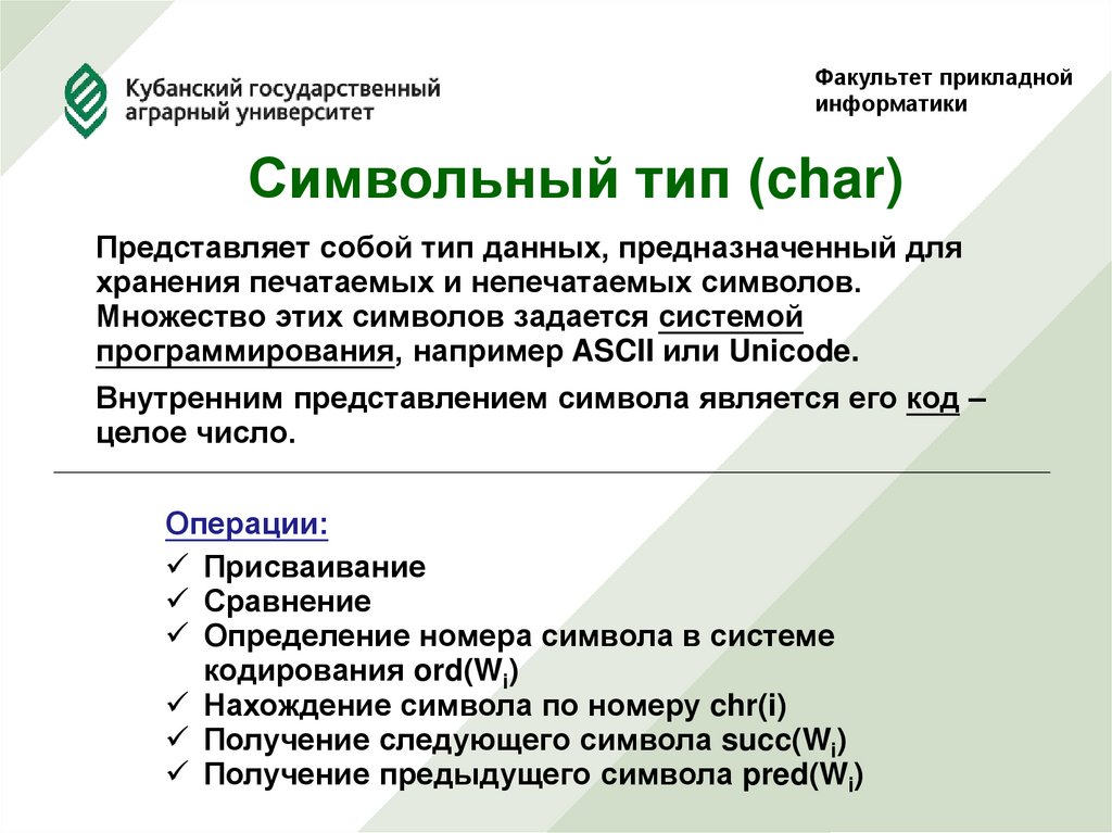 7. Символьный тип (char)