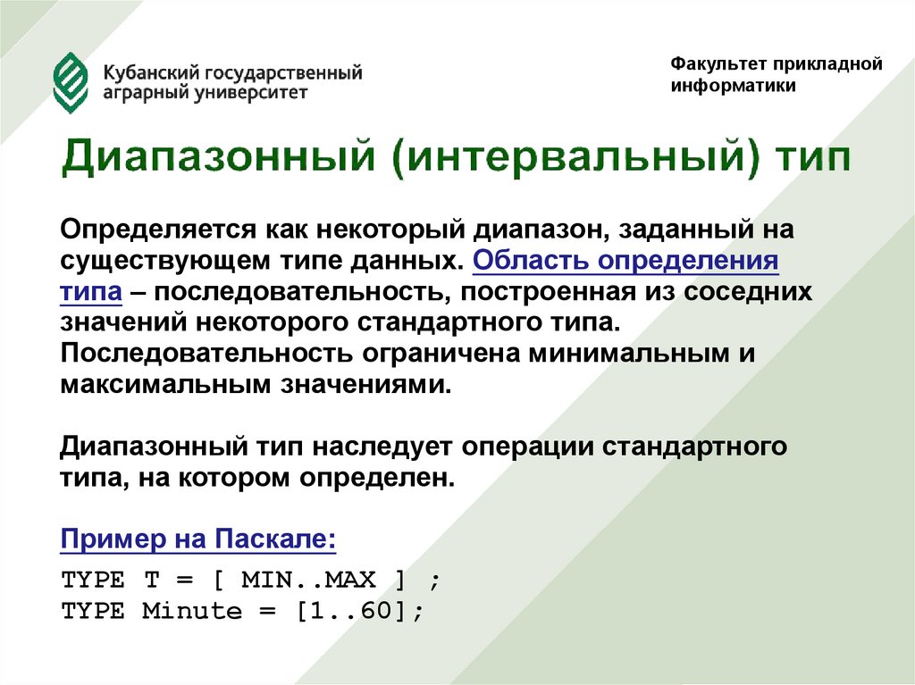 Определяется как некоторый диапазон, заданный на