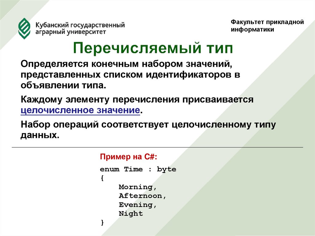 Каждому элементу перечисления присваивается