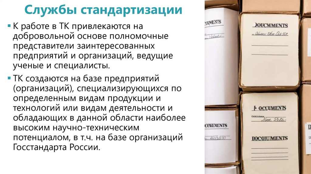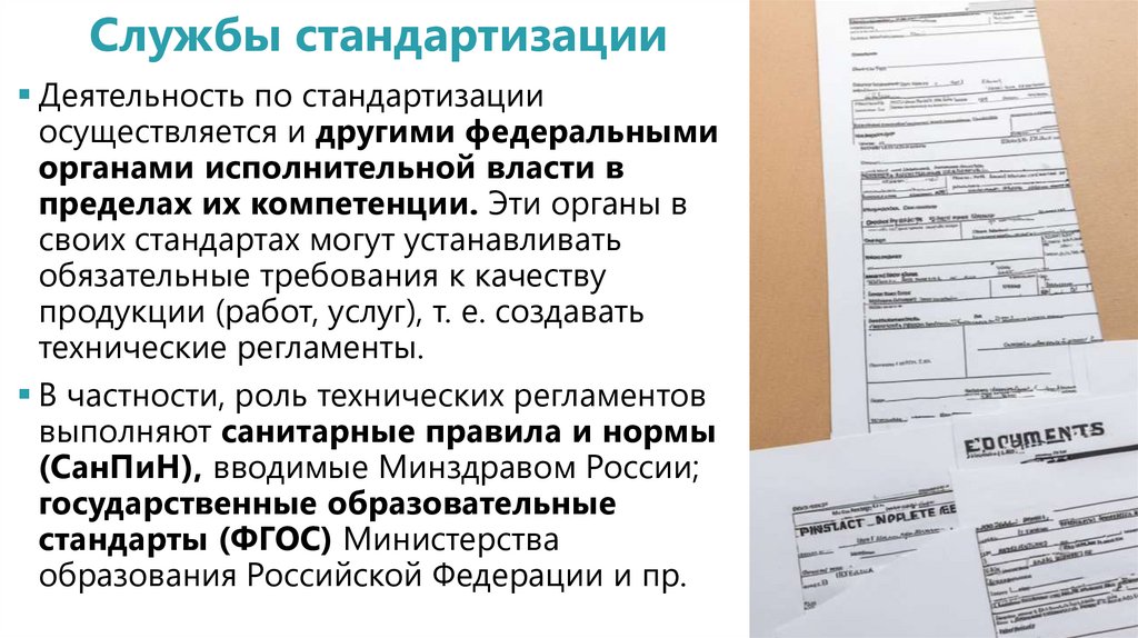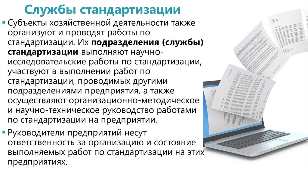 Службы стандартизацииСубъекты хозяйственной деятельности также