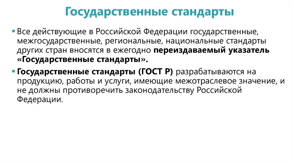 Государственные стандарты (ГОСТ Р) разрабатываются на