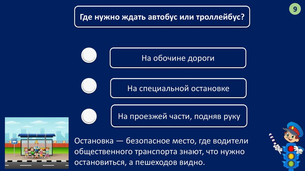 Где нужно ждать автобус или троллейбус?На обочине дороги
