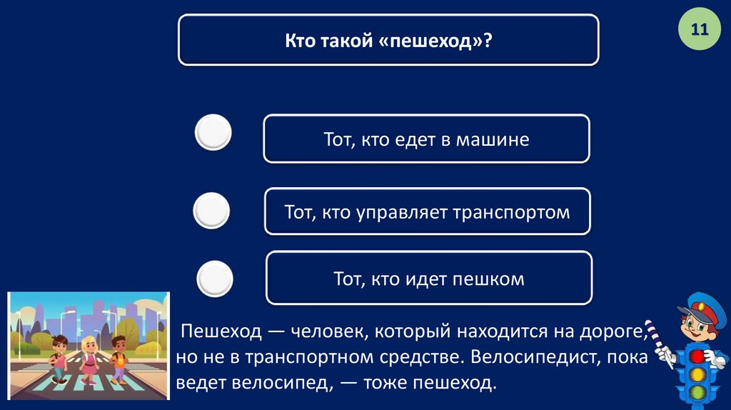 В конце игры подсчитаем все твои баллы и узнаем, какой ты эксперт по ПДД!