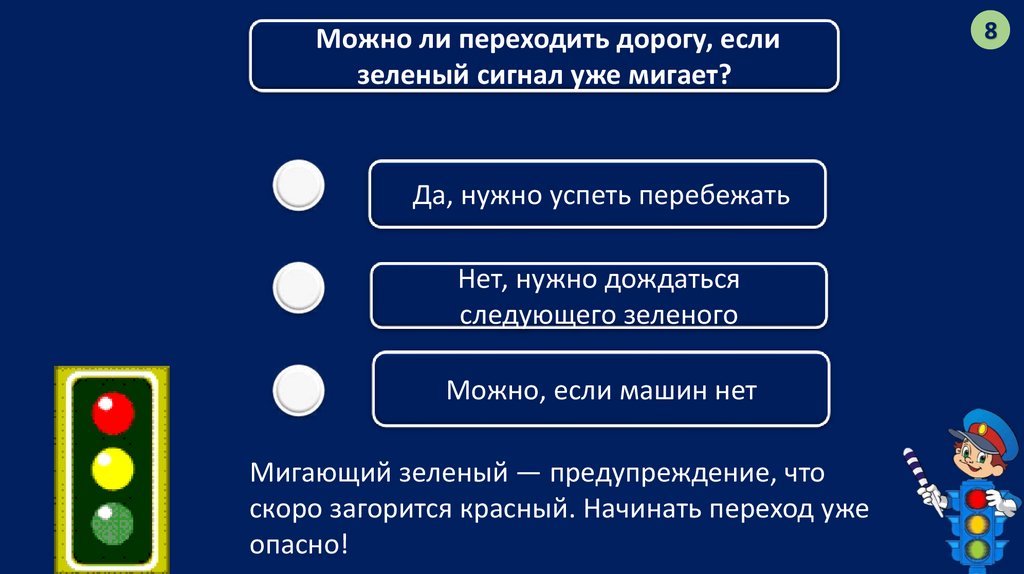 Можно ли переходить дорогу, еслизеленый сигнал уже мигает?