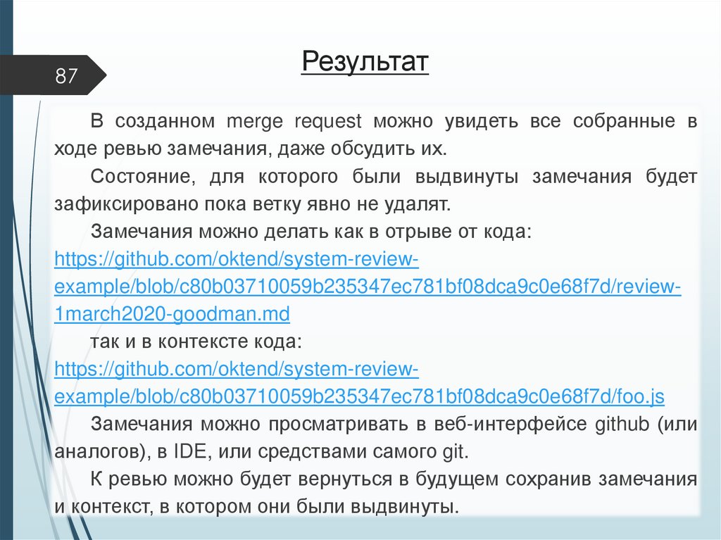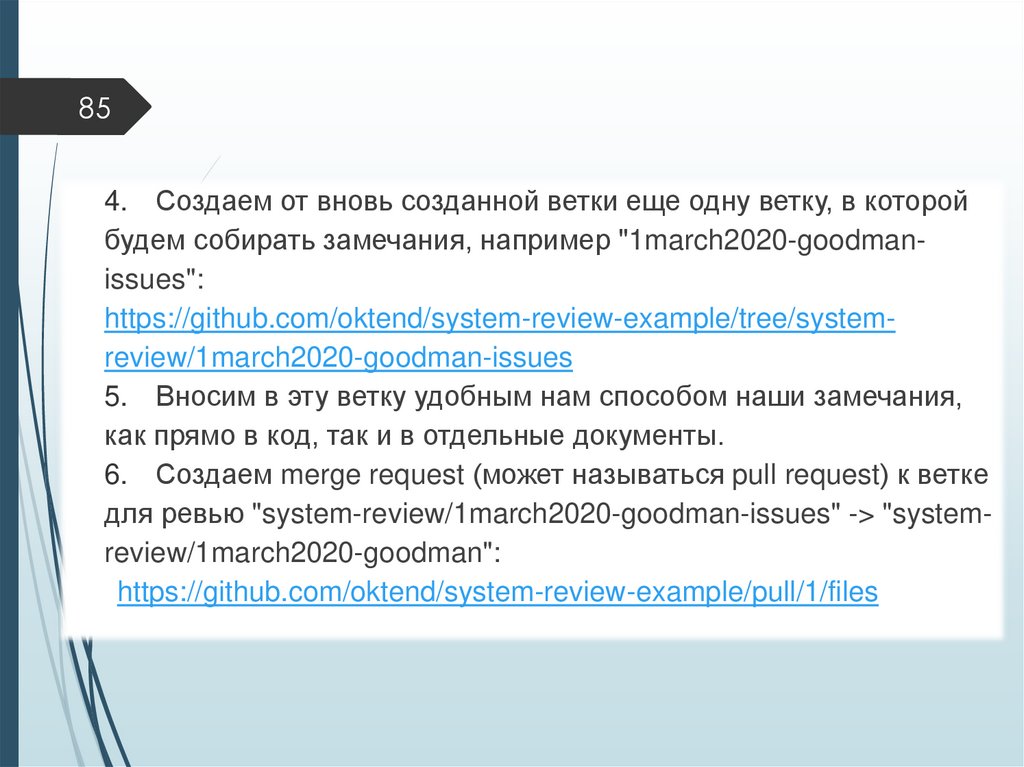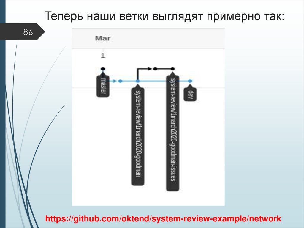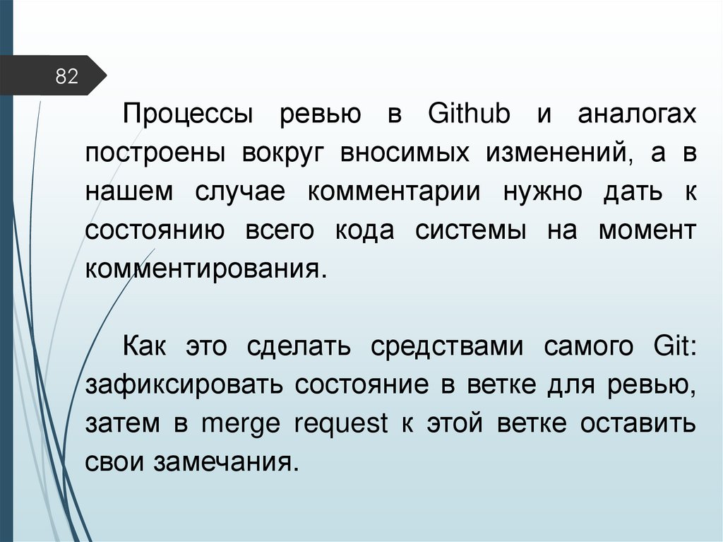 ветке для ревью, затем в merge request к этой ветке оставить свои